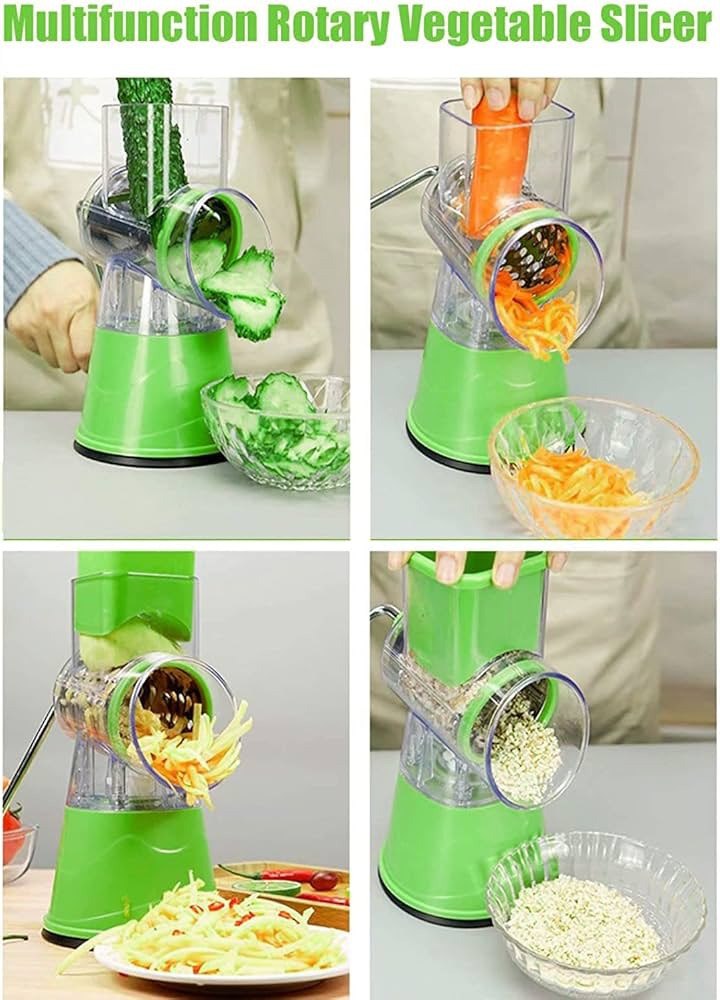 Su diseño manual tipo manivela facilita el procesamiento rápido de alimentos como queso, nueces, zanahorias y patatas.